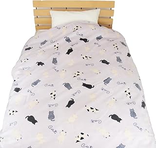 掛けふとんカバー シングル あったか ねこ柄 フランネル 掛布団 布団カバー 洗える (ライトパープル)