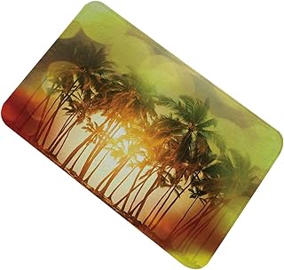海 玄関マット グラデーションデジタルカラープリント 70x120cm マイクロファイバー 可愛い 吸水 速乾 足拭きマット グリーンオレンジレッドの熱帯ヤシココナッツの木の神秘的なイラスト