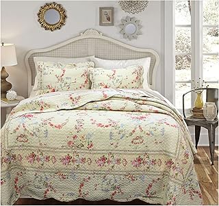 Brandream ファームハウス シャビーカントリー寝具セット コットン100% クイーンサイズ 寝具セット 掛け布団カバーセット ジッパー開閉 (掛け布団カバー1枚+枕カバー2枚)