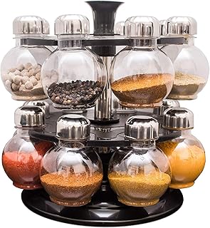 Skyfly 360 Degree Revolving Spice Storage Container Rack Jar Masala Box Set of 16 (Black)