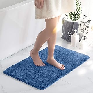 浴室用バスマット ブルー 吸収性 滑り止め ソフト 洗濯機洗い可能 バスマット シャワーラグ 16 x 24インチ