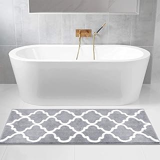 Pauwer 浴室ラグ 浴室用滑り止めバスマット 24インチ x 59インチ 吸水性ソフトマイクロファイバー シャグバスルームマット 洗濯機洗い可能 バスラグカーペット 浴室 浴槽 シャワー用 グレー