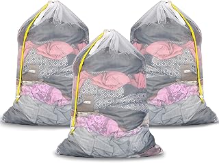 Plusmart メッシュランドリーバッグ 巾着付き 24インチ×36インチ 特大ランドリーバッグ ストップ 旅行 大学寮 アパート 家族 3パック ホワイト 洗濯機洗い可能 L ホワイト 43397-5840