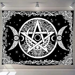 DBLLF トリプルムーンタペストリー ウィッカ 祭壇タペストリー ボーダー ペンタグラム 壁タペストリー L 92.5インチ x 71インチ コットンアートタペストリー トリッピー ブラック ホワイト ペンタクル アートワーク タペストリー ホームインテリア GTYDB1038