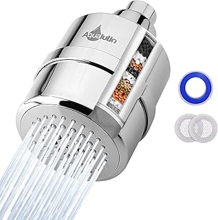 AQUALUTIO 15段階 高級フィルター付きシャワーヘッドセット - 高圧清浄機 浴室ろ過システム 硬水 塩素 重金属用 ビタミンC & E付き - 360度回転フィルター アングルヘッド