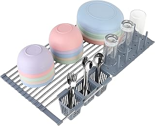 水切りラック 折りたたみ 日本製 多機能 伸縮タイプ 水切りバスケット シンクに合わせて調節可能 耐熱 抗菌 速乾 省スペース 水切りグラススタンド ペットボトルスタンド 箸立て付 折り畳みドレンラック 錆びない くるくる丸めて収納 スッキリ 水切りかご 省スペース 大容量 シリコン素材 GEEDIAR