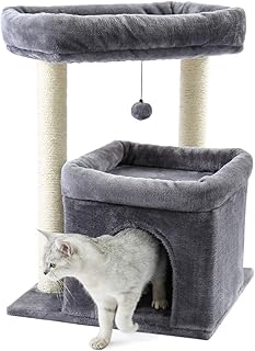 PAWZ Road キャットタワー 省スペース 天然サイザル麻 人気 据え置き型 小型 猫タワー ハウス おもちゃ 麻紐 爪とぎ付き おしゃれ 省スペース 猫 猫用 ケージ専用サイズ おもちゃ ねこ 高さ68cm グレー