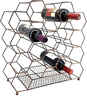 Bellaa 23424 金属製ワインラック 20本 + コルク収納カウンタートップ フリースタンド ワイン収納ホルダー 省スペース プロテクター 赤と白のワイン用 ブロンズ