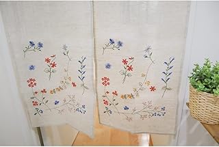 [nissen(ニッセン)] ボタニカルの刺繍が可愛い!ナチュラルのれん ブルー・レッド 幅85×長さ150cm