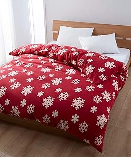 [nissen(ニッセン)] あったかフリース掛け布団カバー(雪柄) 赤 シングル