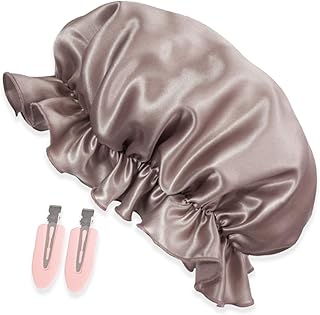 [Amazon限定ブランド] Silknight(シルクナイト)ナイトキャップ シルク 紐 天然シルク100% ロングヘア L リボンタイプ ヘアクリップ付き
