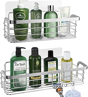 AOBER 粘着シャワーキャディ 可動フック付き ドリル不要 シャワーオーガナイザー 防錆 304 ステンレススチールシャワーシェルフ 2個パック シルバー